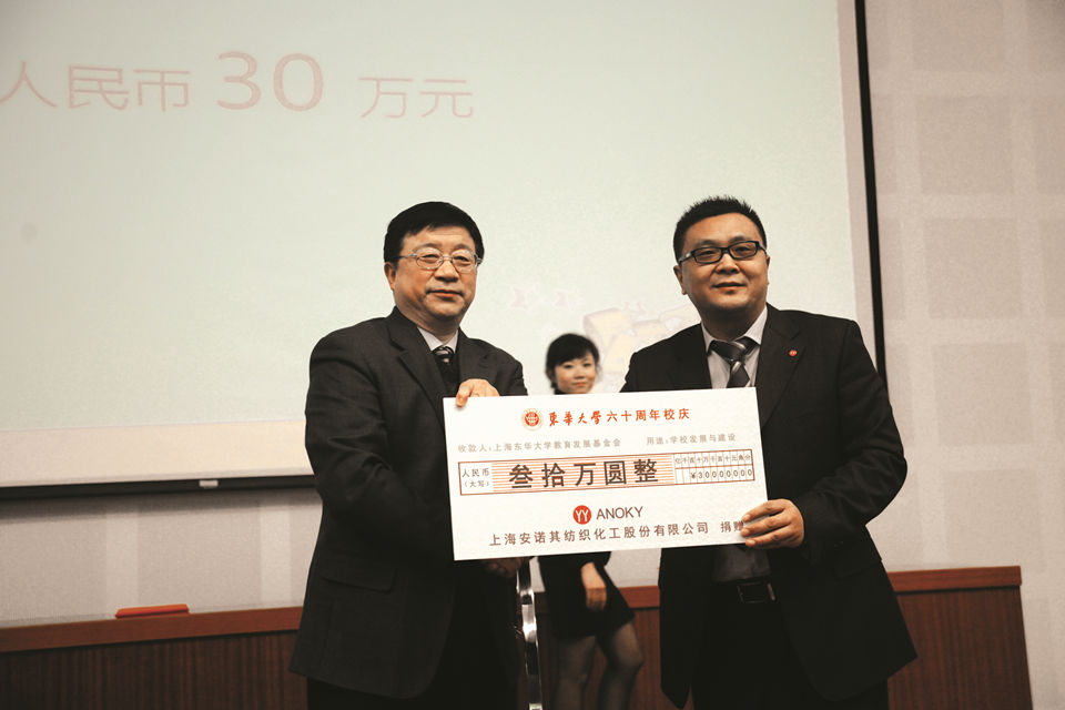 2011年3月 捐資助學 捐贈東華大學教育發(fā)展基金會30萬元